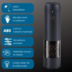 101Products Peper- & Zoutmolen Elektrisch – USB Oplaadbaar – Pepermolen – Zoutmolen – RVS