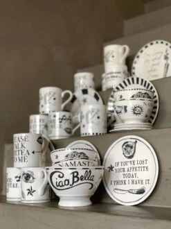 De zwart-witte tegenhanger van het bekende Blondservies is er. BLOND X NOIR. Herkenbaar handcrafted, met een ingetogener uitstraling. Tót je de tekst leest op het bord: I licked it so it’s mine. Nu dus óók Blond Amsterdam voor wie minder van het bonte en blozende is.