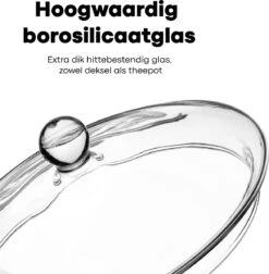 Zet een heerlijke kop thee voor jezelf en plof lekker op de bank. Je thee blijft heel lang warm in deze theepot met dubbele wand. Doordat de theepot dubbelwandig is zie je de thee goed. Maak een lekkere kruidenthee of doe een paar verse takjes munt en een schijfje citroen in de glazen pot. Je hebt een prachtige theekan voor op tafel!